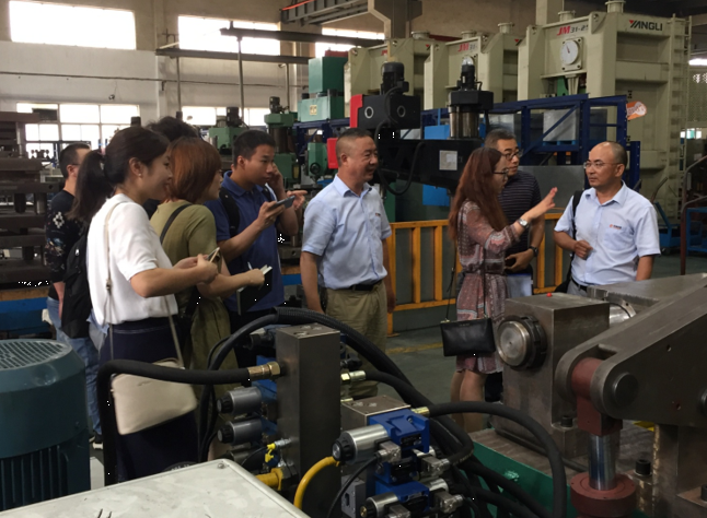 首先在營銷部銷售總監(jiān)江總、采購部呂永剛部長及總裁辦趙錦翔主任等人的帶領下,國家知識產權局一行參觀了我司產品展示區(qū)及生產車間,觀看產品的生產工藝流程。重點觀看調研我司自主研發(fā)的內撐式滾圈機、鋼圈自動焊接裝置及鋼圈聯軸滾圈機的機械機構和生產過程。深入了解了我司的產品特點和生產工藝工序,提出了很多寶貴的意見和見解。