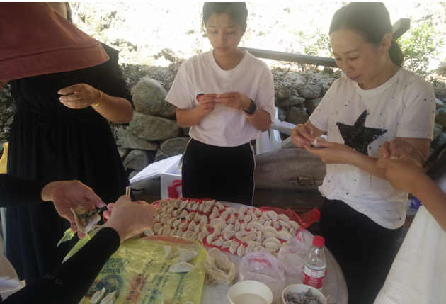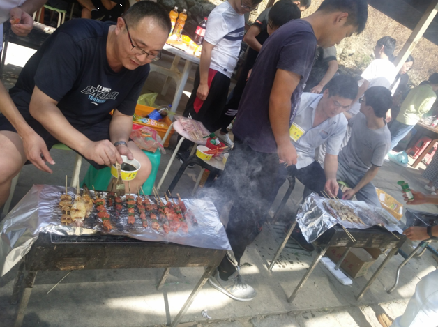 上午達(dá)到目的地后,各小組有條不紊的開始了第一項(xiàng)活動(dòng)-自主烹飪。大家烹飪的內(nèi)容也是豐富多彩,有燒烤、火鍋、包餃子、還有本地特色豬肉飯。平常不怎么露手的各位可都深藏不露,在公司里研發(fā)中心團(tuán)隊(duì)可是有著燒烤達(dá)人美稱的。今年又新晉一組美食達(dá)人團(tuán)隊(duì)總裁、人力組,因?yàn)樗麄兂晒Υ蚱屏送陰状螣i肉飯失敗案例,這個(gè)逆襲非常漂亮!毫不低調(diào)的說風(fēng)馳這個(gè)大家庭里有著廚師級別的成員也是高手云集的。經(jīng)過一番忙碌之后,大家心滿意足的享受完一起親手烹飪的美食。