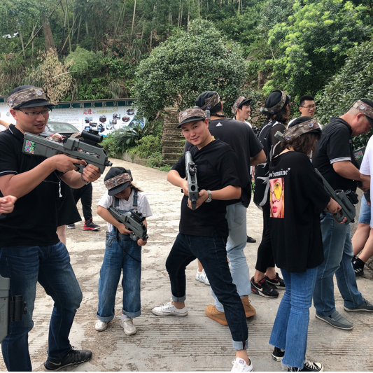 稍作休息后,大家期待的第二項(xiàng)活動(dòng)-真人CS。在教官的一聲問好中拉開了序幕,風(fēng)馳團(tuán)隊(duì)高聲回答“好,很好,非常好”的口號響徹云霄,振興士氣。教官看了都夸贊我們是有組織,團(tuán)隊(duì)凝聚力很強(qiáng)的團(tuán)隊(duì)。教官先給大家分成了4小組,每組成員為17人,以車輪戰(zhàn)的方式來決定最后勝利的一組,獲勝小組將會(huì)獲得價(jià)值2800元的獎(jiǎng)品。聽到獎(jiǎng)品的價(jià)值各小組成員兩眼放光,蠢蠢欲動(dòng)。大家熟悉裝備使用以及了解游戲規(guī)則后,游戲正式開始了。