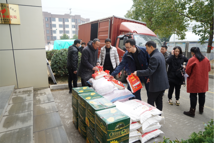 為了解決疫情期間企業留松員工日常生活,松門鎮總工會、商會組織開展了“送溫暖”入企業活動,讓員工度過一個安心溫暖的春節。1月20日,鎮工會主席劉君斌、商會會長梁新方一行人來到風馳公司,送來大米、面粉和食用油。公司執行總裁總裁潘凌杰,工會主席呂曦紅熱情接待。