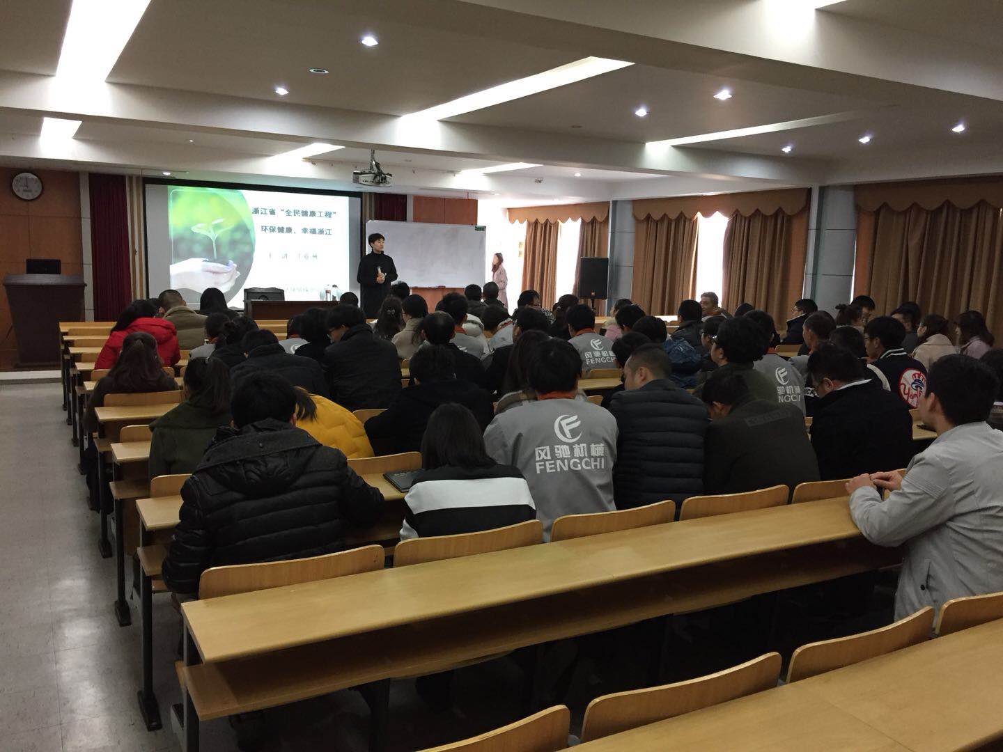 2018年1月17日浙江新生活環(huán)境保護宣教中心走進風(fēng)馳進行有關(guān)全民環(huán)保健康,共創(chuàng)美麗浙江的宣講活動,宣傳內(nèi)容為環(huán)保衛(wèi)生,垃圾分類,職工亞健康。